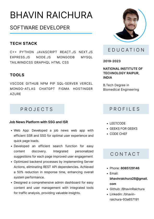 My journey began during my college years at NIT Raipur where I discovered my passion for software development while working on various projects. Though I hold a degree in Biomedical Engineering, my professional path led me to become a software engineer. Now with 1.5 years of industrial experience, I specialize in web development and backend technologies, creating robust and scalable applications.